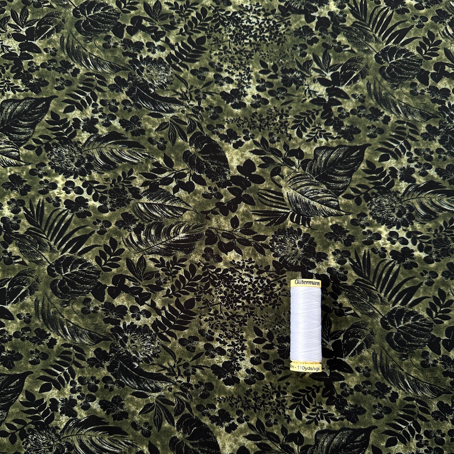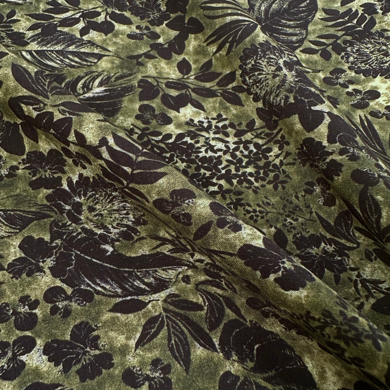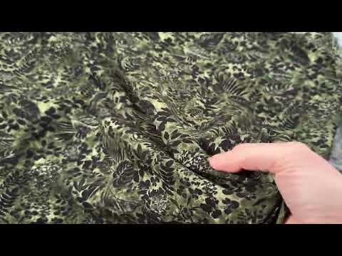 This beautiful dressmaking fabric has leaves across a background of different shades of green. It is soft and drapey, perfect for sewing a blouse, floaty dress or swishy skirt.