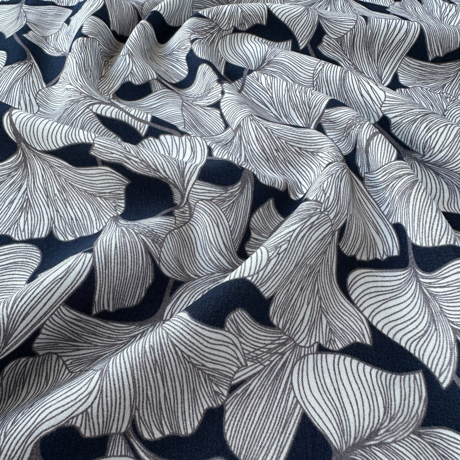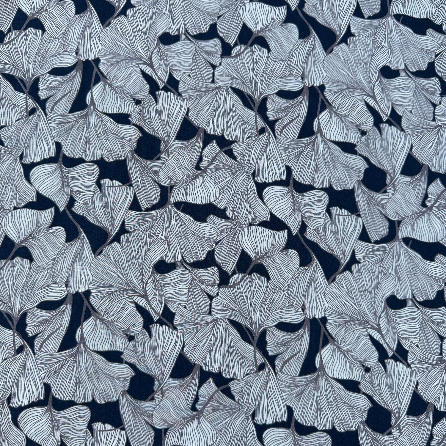 This soft and drapey viscose lawn has ginkgo leaves across a dark navy background. It is perfect for sewing yourself a floaty dress, skirt, blouse or top.
