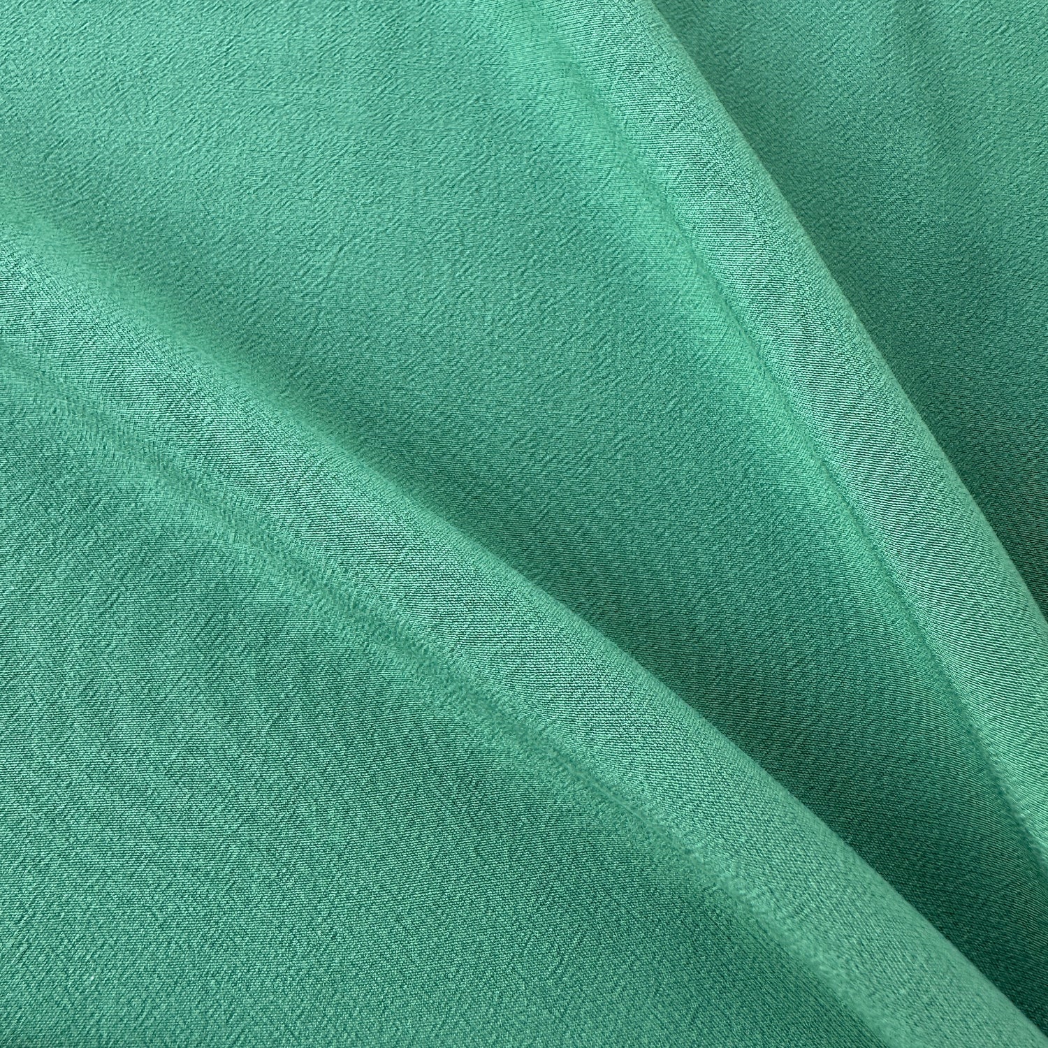 This textured viscose dressmaking fabric is a gorgeous green colour. It feels soft and would be comfortable to wear. You could use this fabric to make yourself a top, blouse or dress.